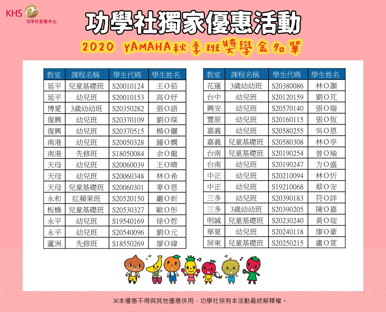 *11/13抽出後於此網頁與功學社音樂Bar粉絲團公告,並提供獎學金券。