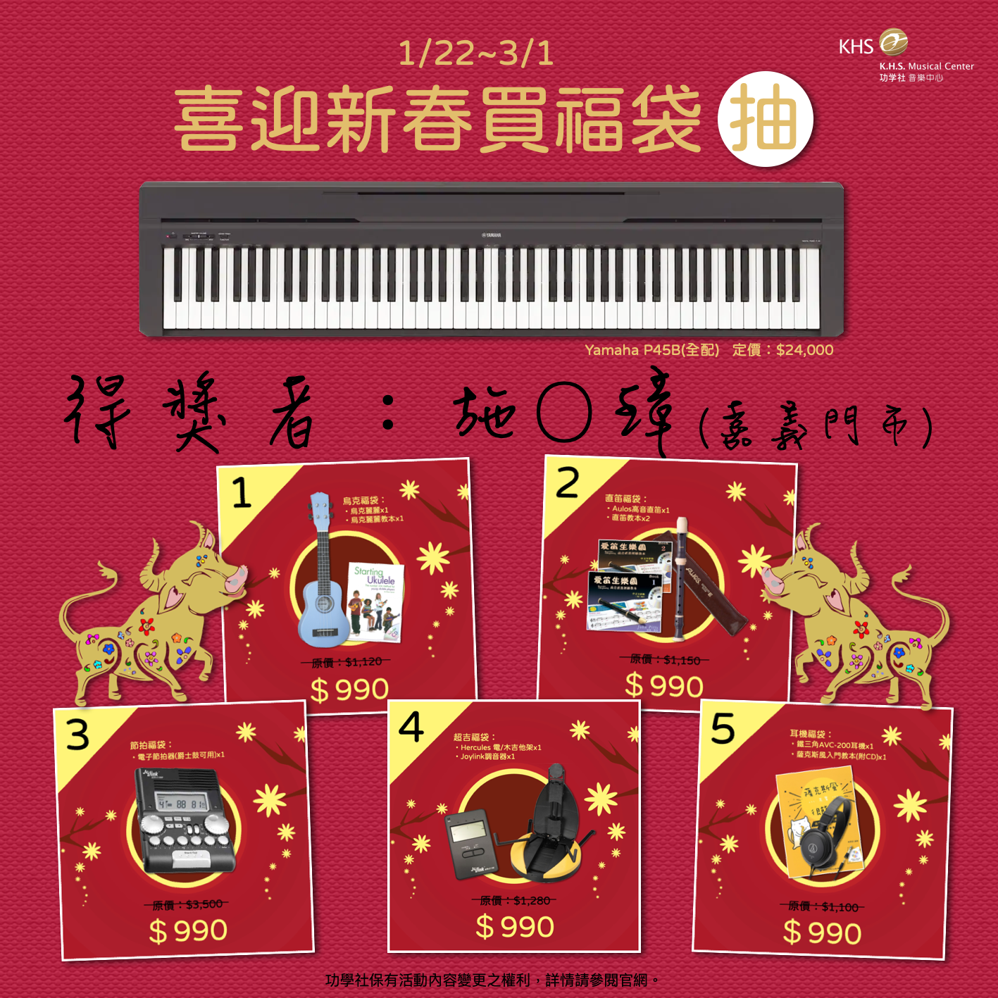 喜迎新春買福袋抽數位鋼琴!(得獎公告)