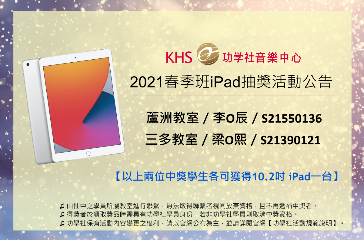 [原訂2021/5/18之iPad抽獎活動 ,因疫情暫停實體課程關係,抽獎日延後暫定為7/30,造成不便,敬請見諒!]