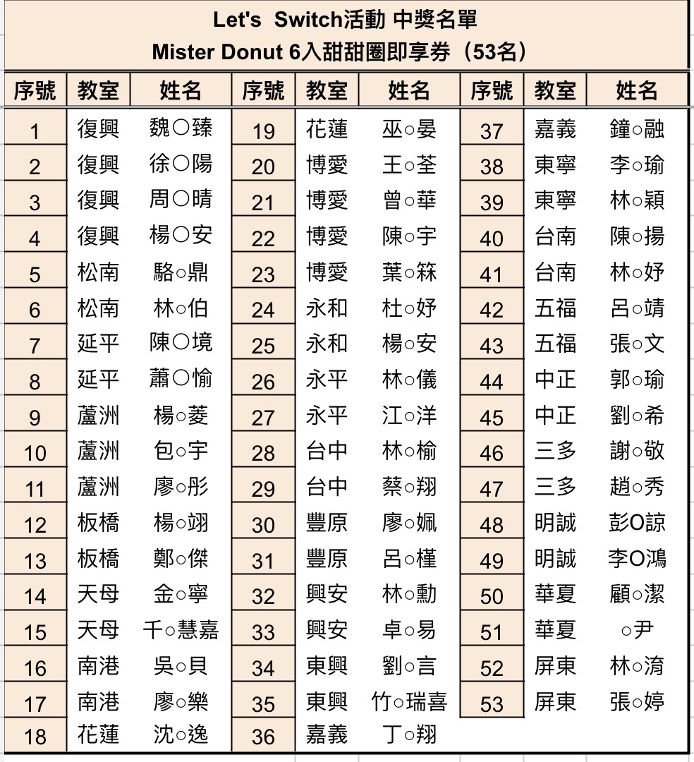 將留言卡投入櫃檯摸彩箱,即可參加教室專屬抽獎活動。