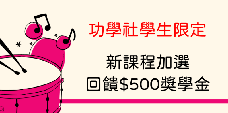 限量二用音符提袋、線上樂譜看到飽、練琴卡、課程加選現賺$500獎學金等好康享不完!