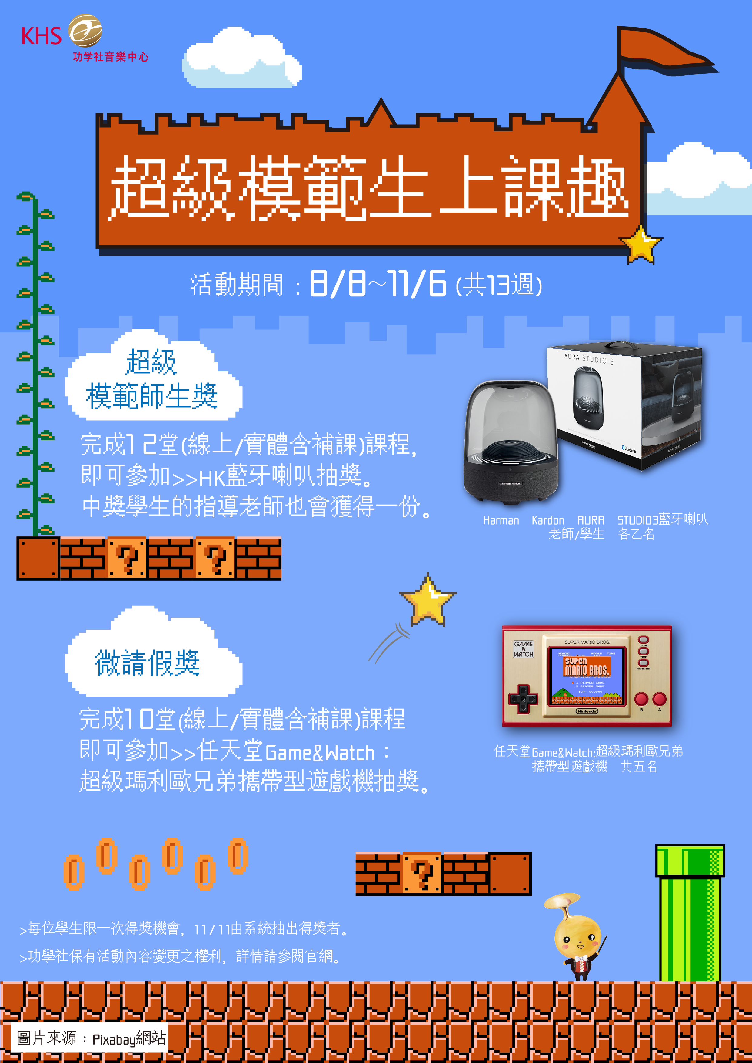 完成10堂 (線上/實體含補課)課程即可參加任天堂 Game & Watch: 超級瑪利歐兄弟攜帶型遊戲機抽獎。