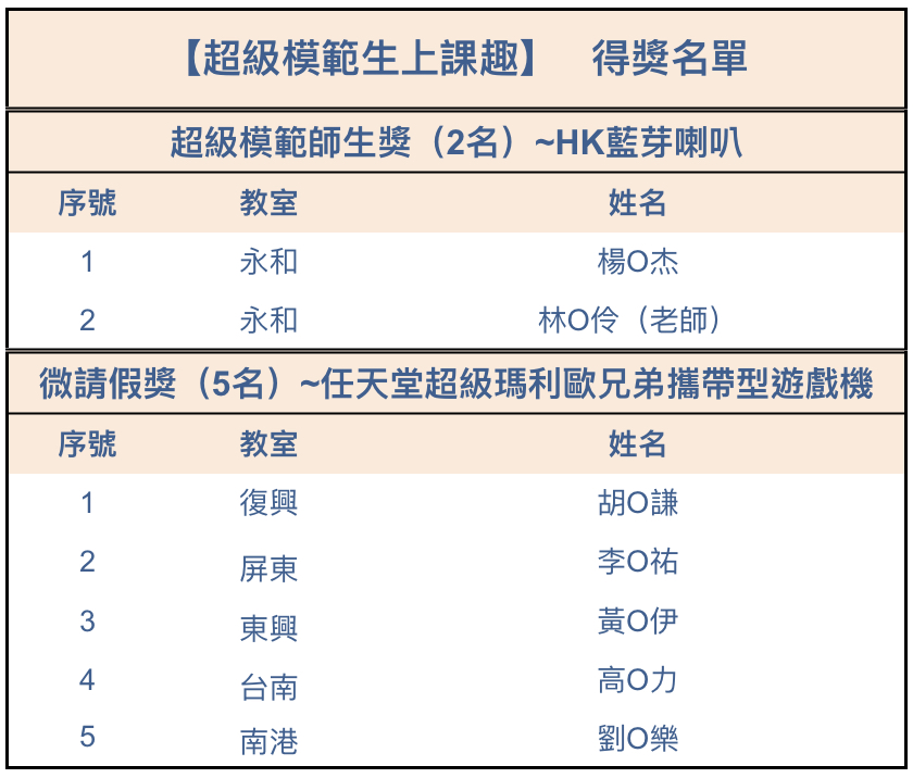 *每位學生限一次得獎機會,11/11將由系統抽出得獎者。