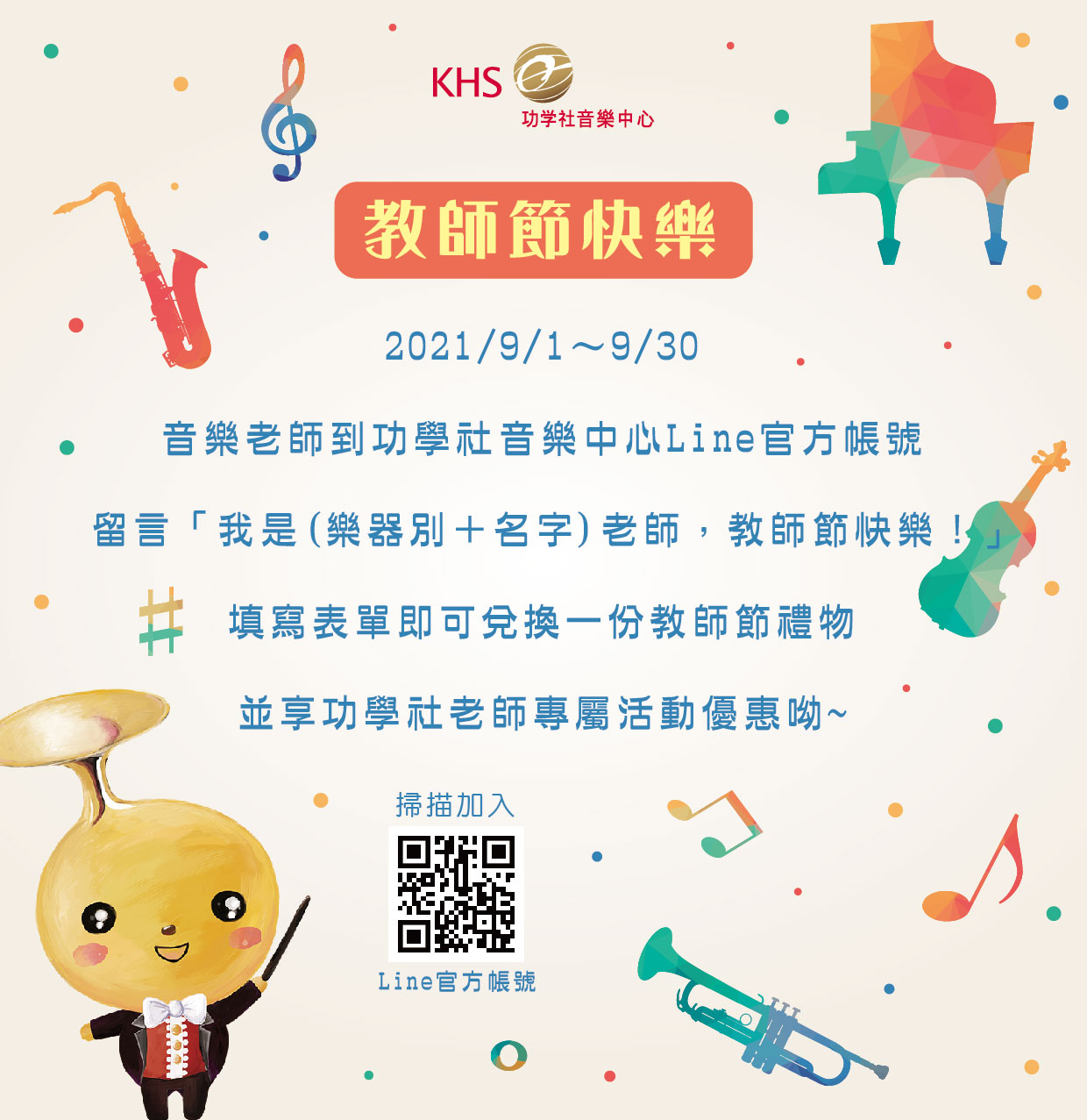 謝謝老師們在疫情期間,還努力紮根音樂教育,也讓音樂產業持續地發展!教師節即將到來,小編除了帶給各位老師祝福,也要送給老師們,功學社的小小贈禮哦!