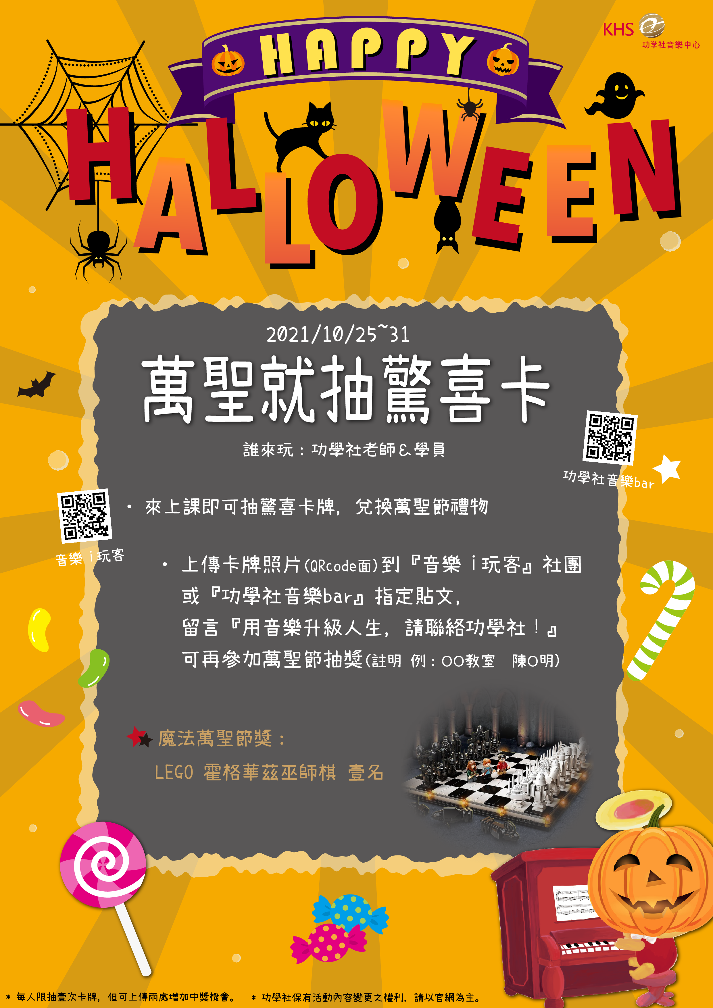 活動期間來上課即可抽驚喜卡牌,兌換萬聖節禮物!