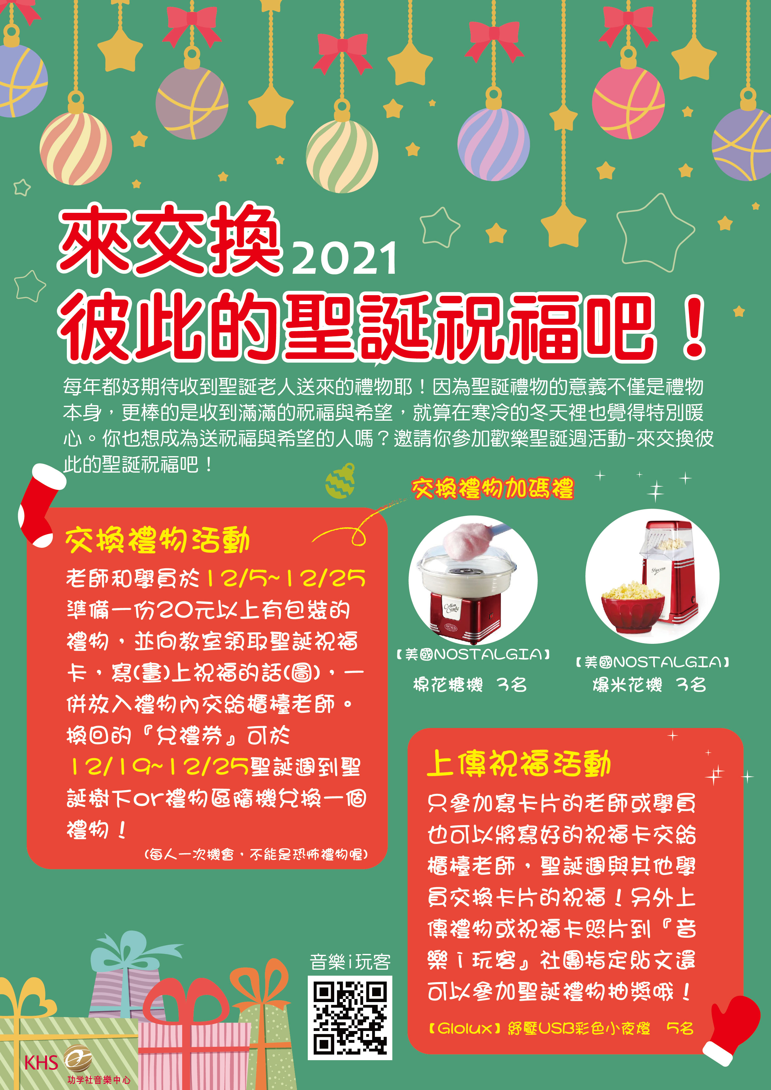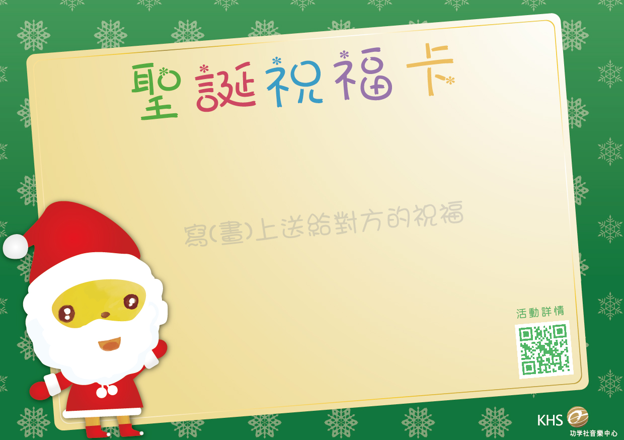 只參加寫卡片的學員也可以將寫好的祝福卡交給櫃檯老師,聖誕週與其他學員交換卡片的祝福!另外上傳禮物或祝福卡照片到『音樂 i 玩客』社團指定貼文還可以參加聖誕禮物抽獎哦!