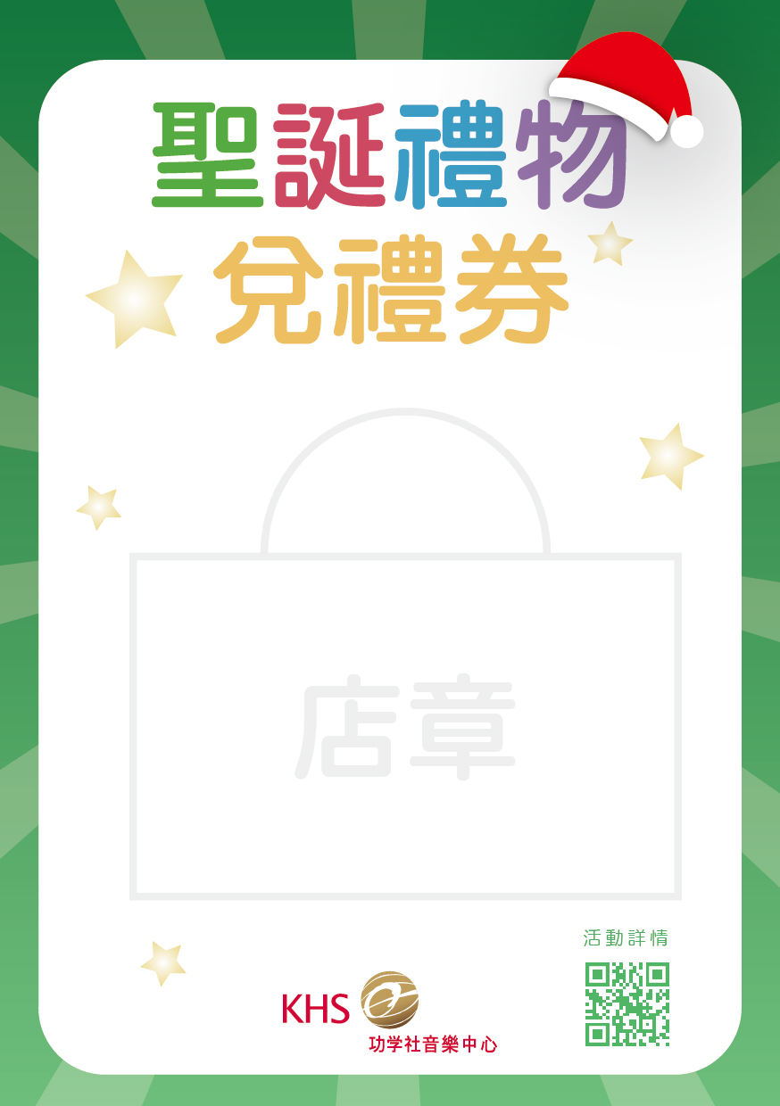 向教室領取聖誕祝福卡,寫(畫)上祝福的話(圖),一併放入禮物內交給櫃檯老師,換回一張『兌禮券』,聖誕週憑『聖誕禮物兌禮券』就可以到聖誕樹下或禮物區兌換一個禮物!