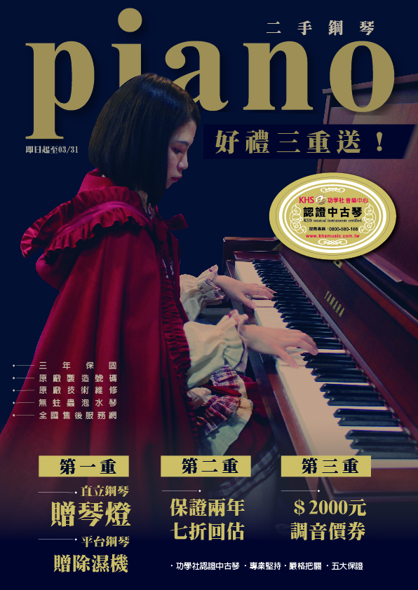 至功學社門市購買中古琴可享有三大好禮送!