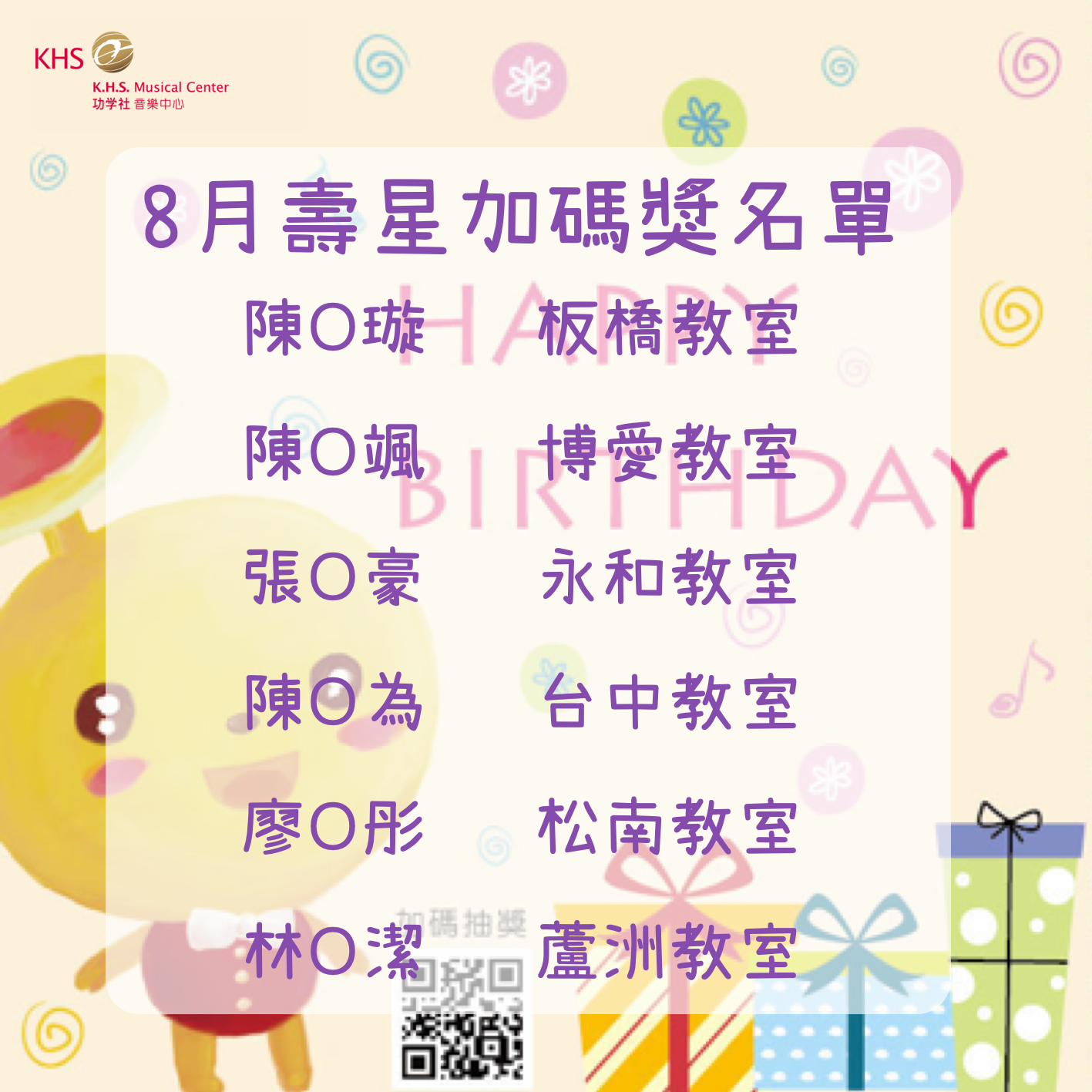 請當月壽星加入功學社音樂中心Line官方帳號(點擊加入),說出通關密語: