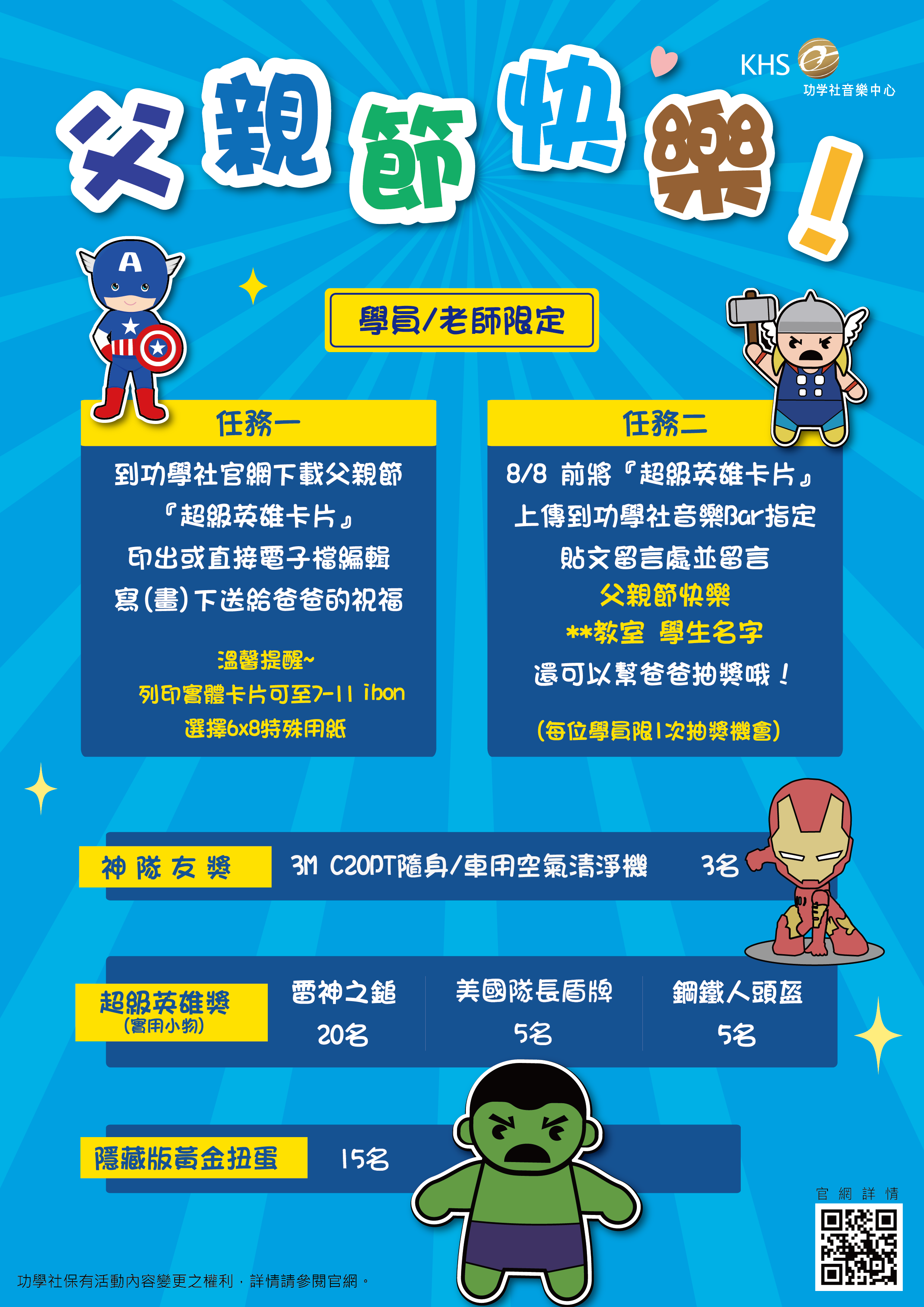 謝謝爸爸不辭辛勞、默默付出!父親節除了送給爸爸『超級英雄卡片』,還要當超級英雄的神隊友,幫爸爸抽大獎!