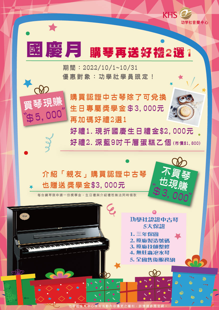*每台琴僅可申請1份獎學金,生日/介紹禮不可同時領取。