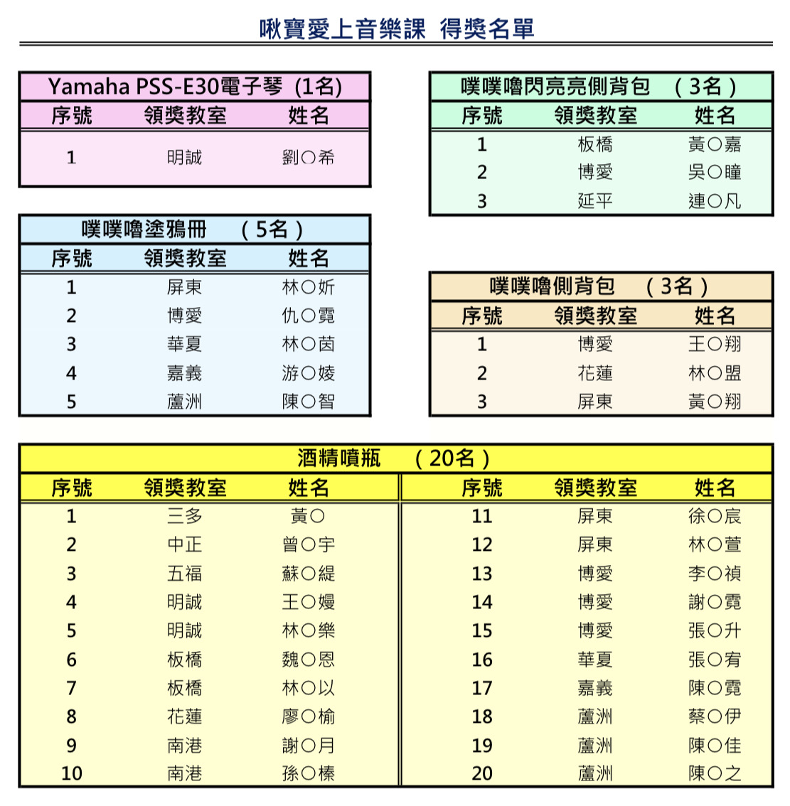 2023/3/15抽出獲獎者