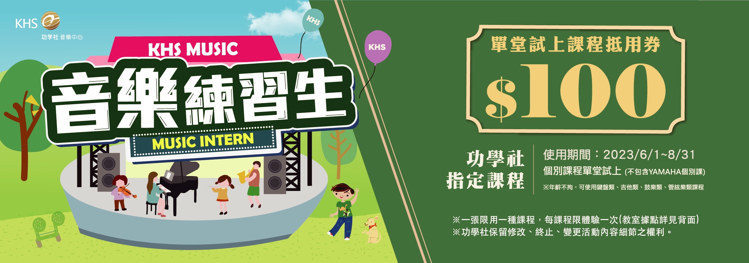 3.課程優惠項目不可與其他優惠併用,亦不包含夏令營、單堂課程、半小時鋼琴課。
