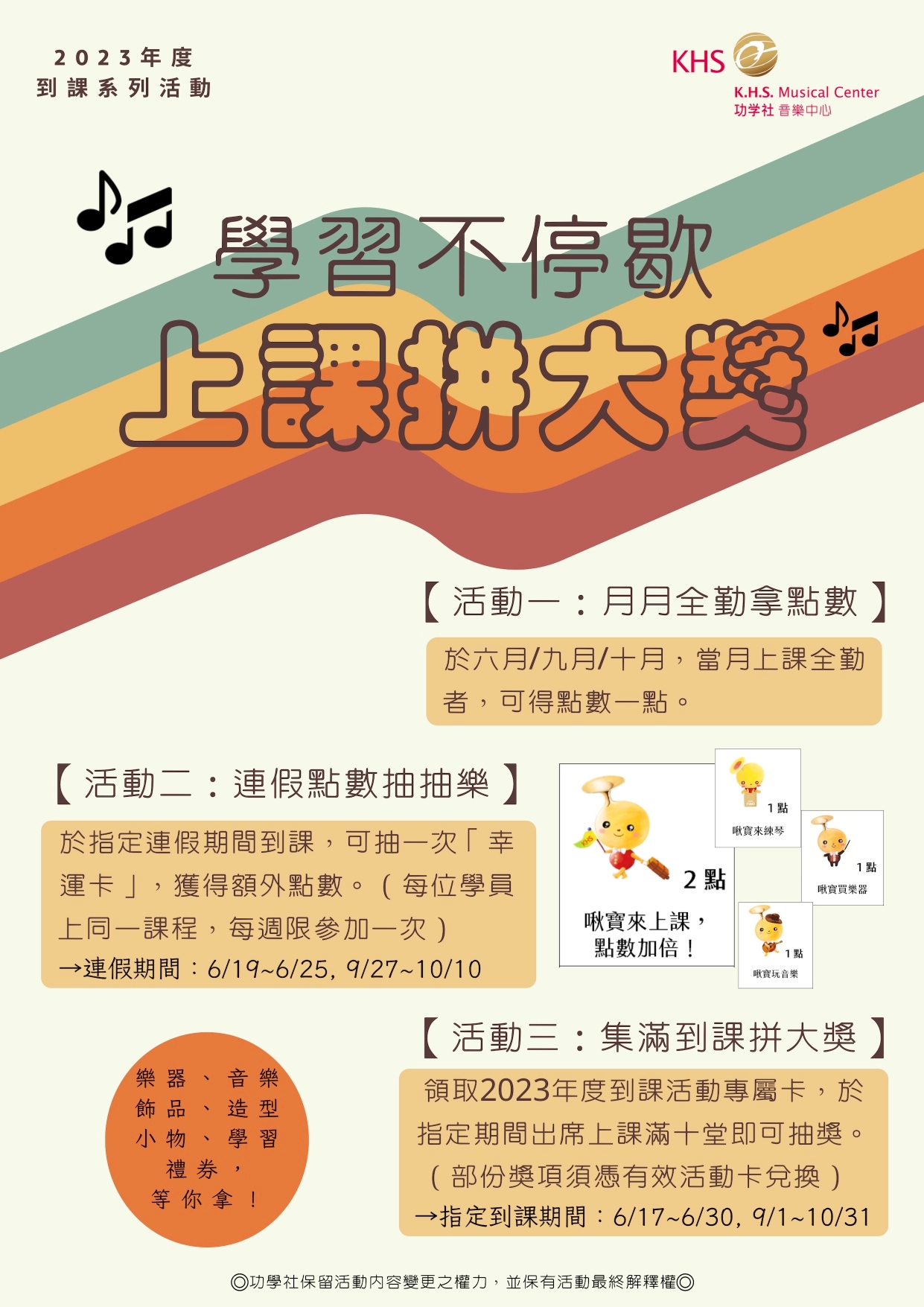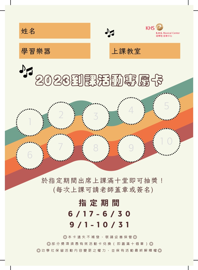 於指定期間出席上課滿10堂即獲抽獎資格。