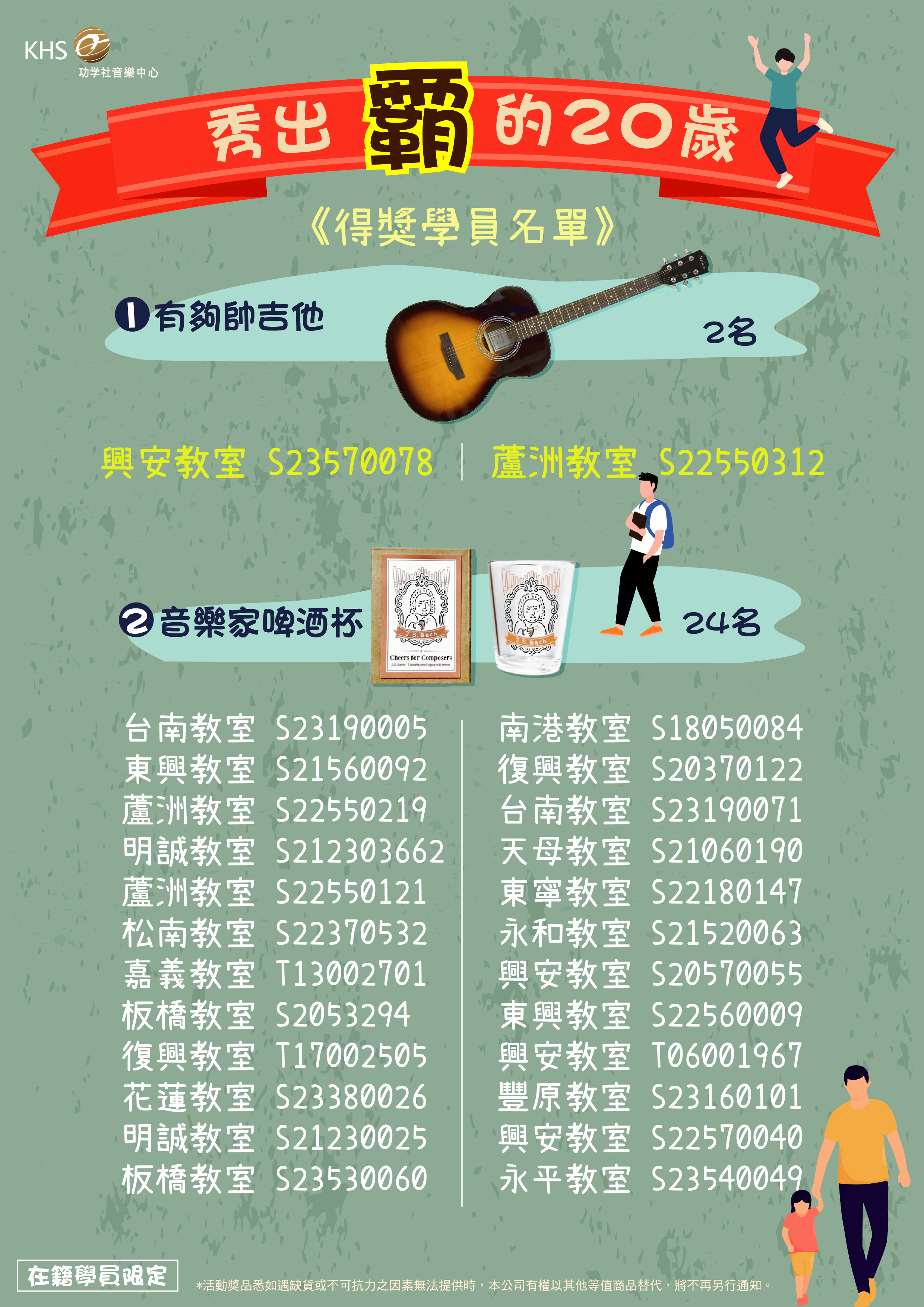 ・領獎時的身份仍需為功學社在籍生,非在籍生身份即取消資格不另通知,亦不再遞補中獎名額。