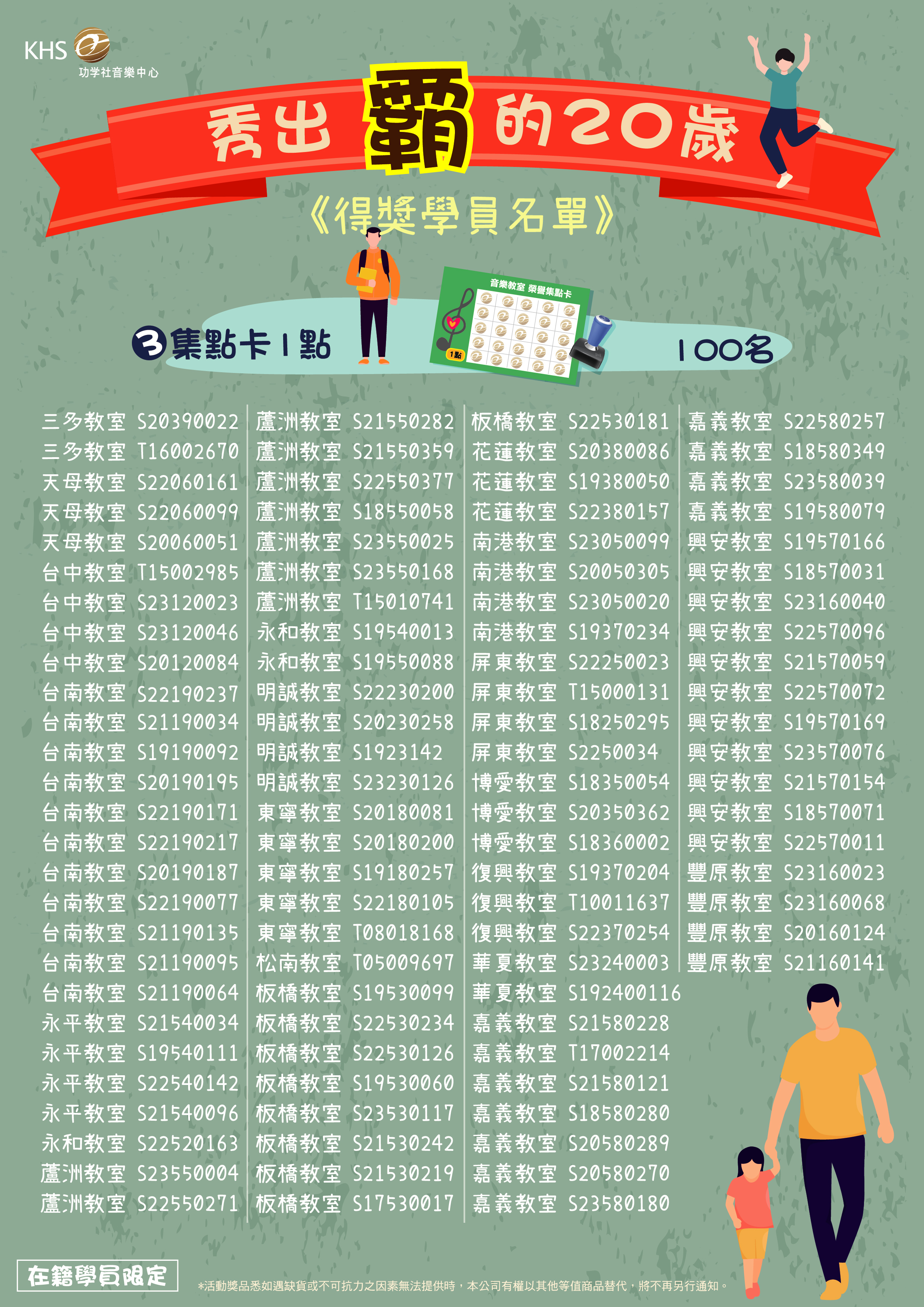 ・獲獎學員將由所屬教室櫃台人員核對參與者的身份資格。