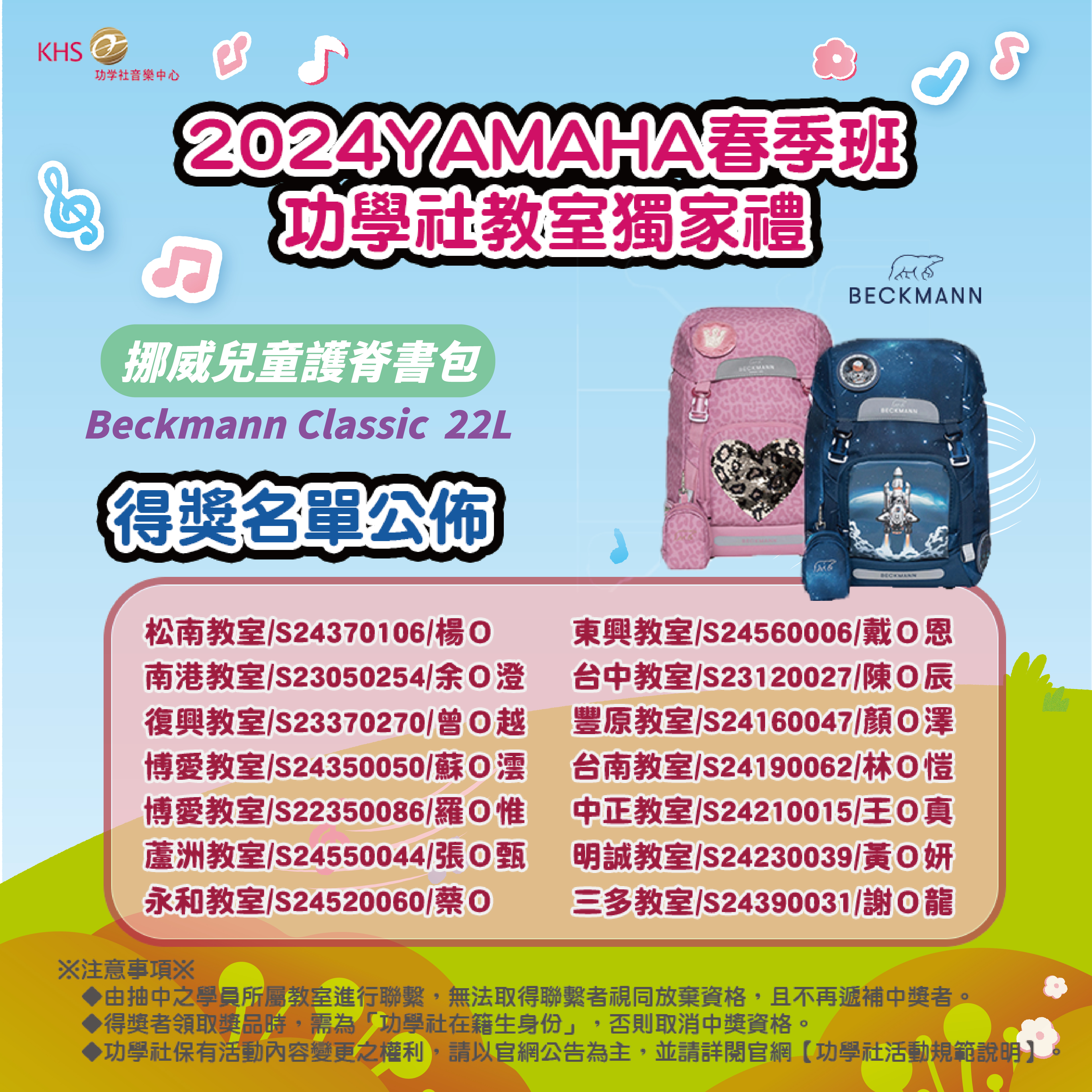 2024Yamaha春季班-Beckmann護脊書包得獎公告