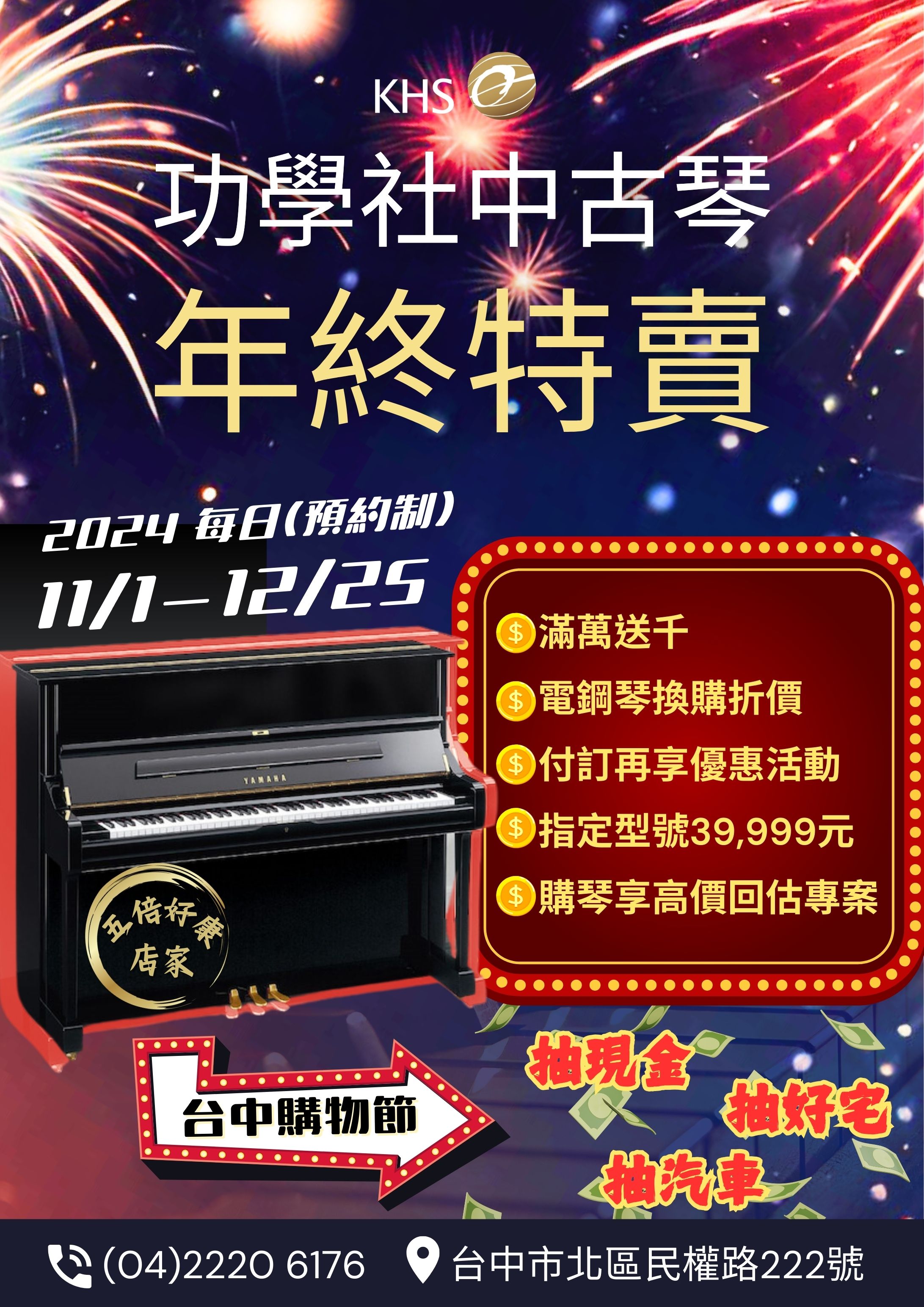 【功學社中古琴年終特賣會】X台中購物節