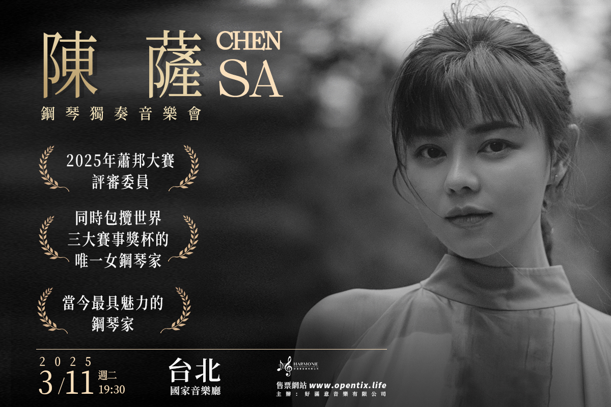 國際鋼琴家陳薩,被英國古典調頻BBC譽為「我們這個時代,最具魅力的鋼琴家」,在16歲時便陸續摘得了利茲、蕭邦、範克萊本世界鋼琴大賽的大滿貫,成為全球矚目的鋼琴天才。2010 年,在蕭邦誕辰 200 年之際,波蘭政府授予陳薩全球僅80本的「蕭邦藝術護照」,以褒獎她在演奏蕭邦音樂方面的卓越與貢獻,並出任2021年及2025年波蘭蕭邦國際大賽評審委員。