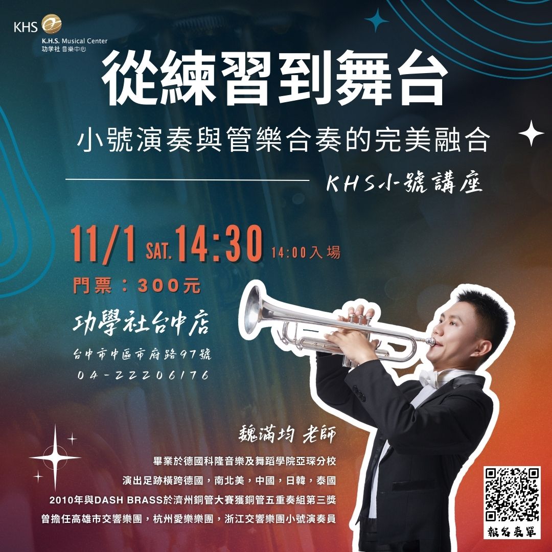 這次功學社特別邀請✨魏滿均老師 —擁有豐富樂團實戰經驗的小號演奏家,帶領大家更加深入了解~