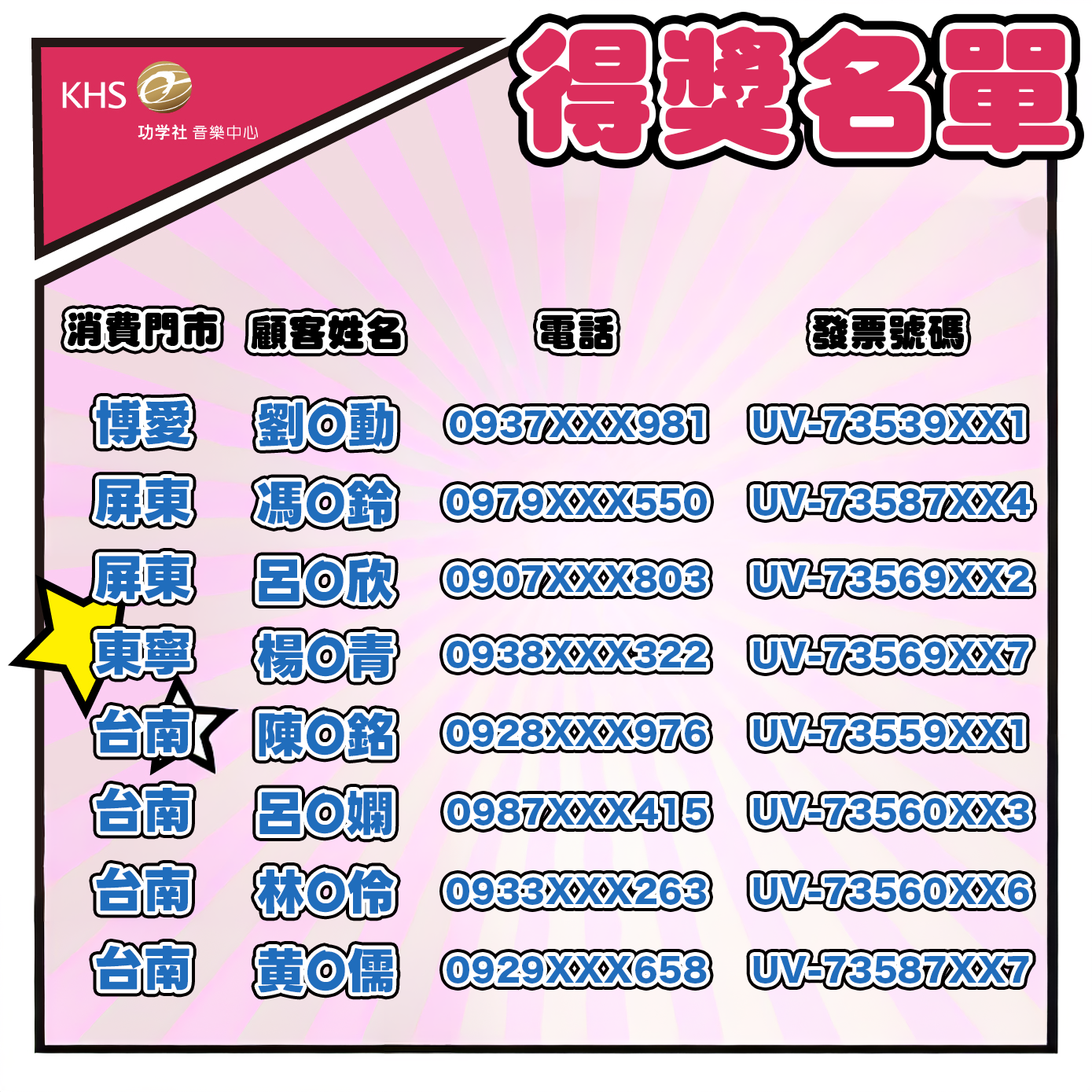 恭喜以上幸運得主,感謝你們對功學社的支持