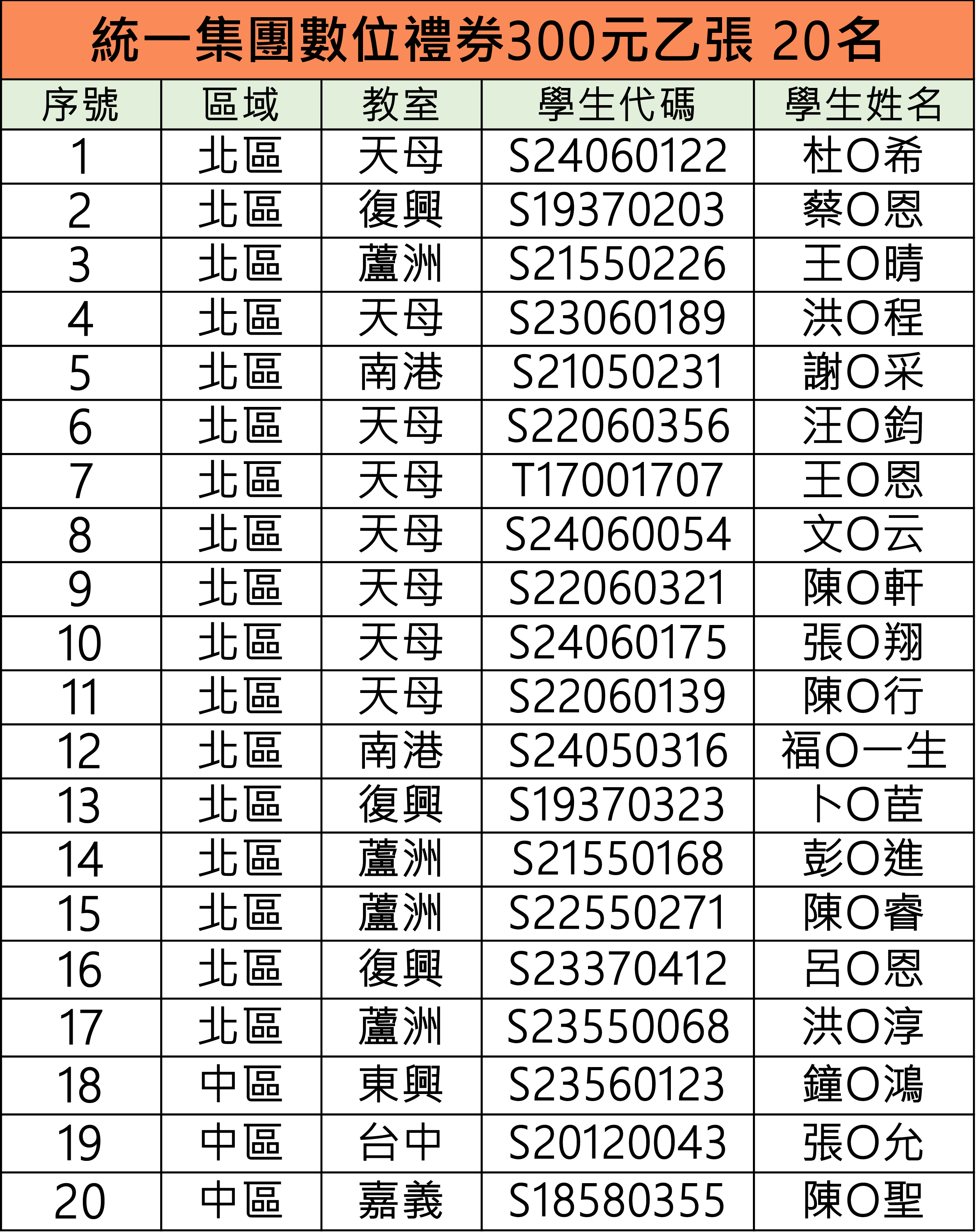 • 得獎名單於2026/01/16(五)抽出並公告於官網;領獎時學員仍須為在籍生身份,非在籍生身份即取消資格,且不再遞補得獎者。