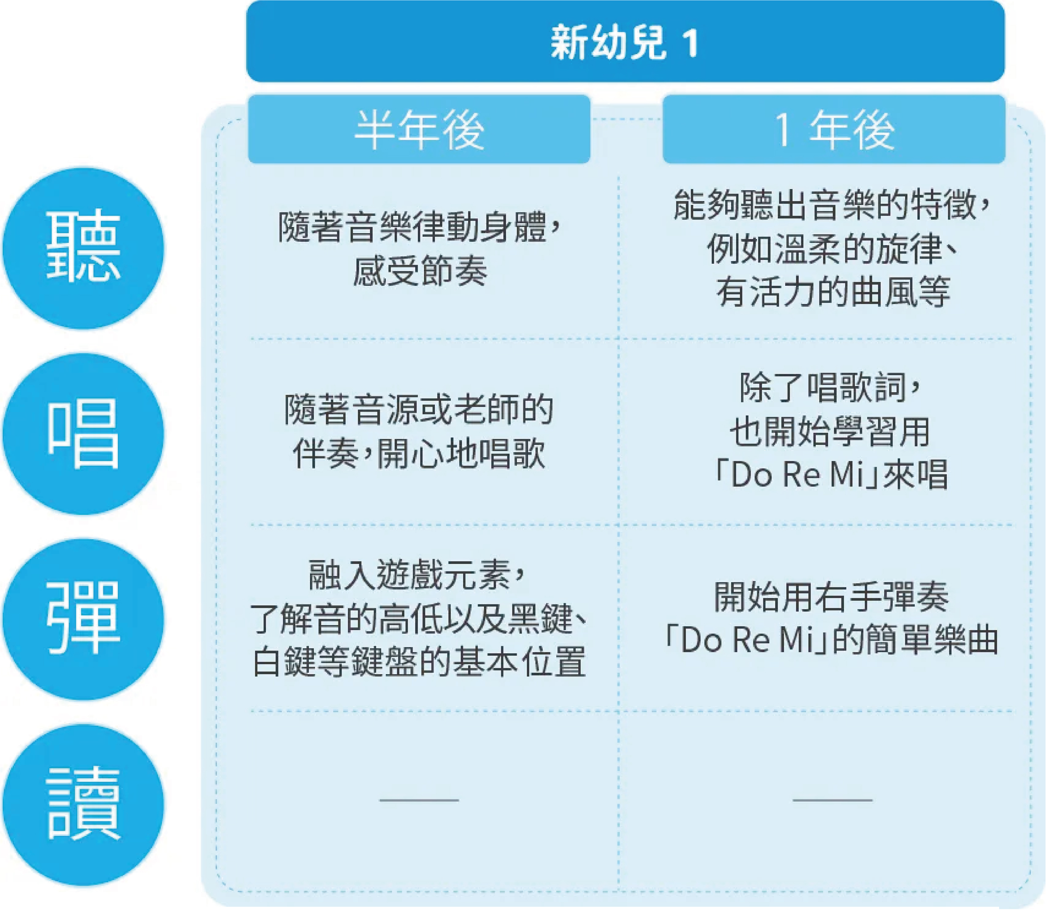 歌詞唱:透過演唱各種不同風格的歌曲,培養孩子豐富的音樂表現力與情感。