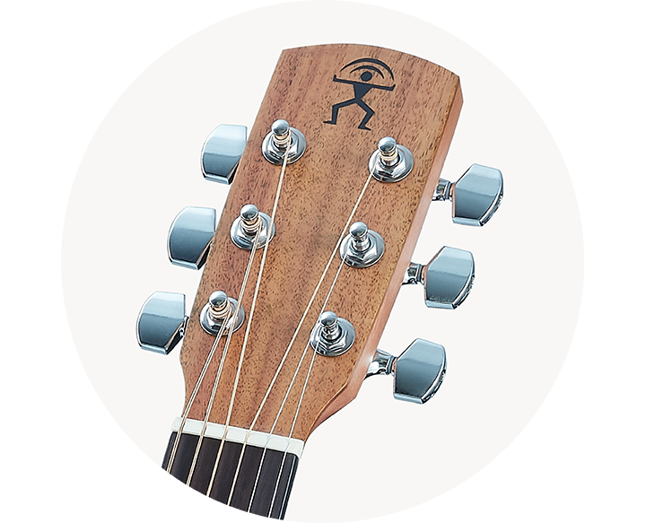 aNueNue基本款琴頭造型,琴頭上方有特殊印刷的aNueNue LOGO。搭配1:14齒輪式弦鈕。