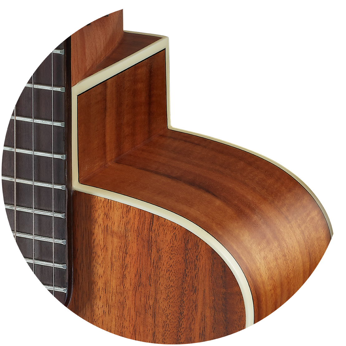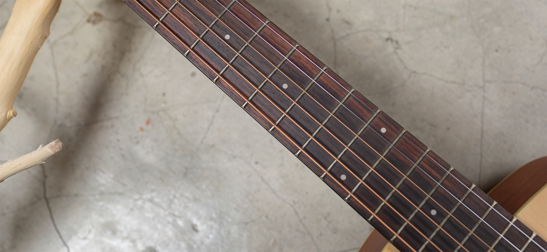 玫瑰木硬度較高的玫瑰木,氣孔較多、含有豐富油脂的特性,讓玫瑰木指板能適應各種環境,能有效傳導聲音震動。並經過多種細節程序處理,讓持琴手感更舒適。