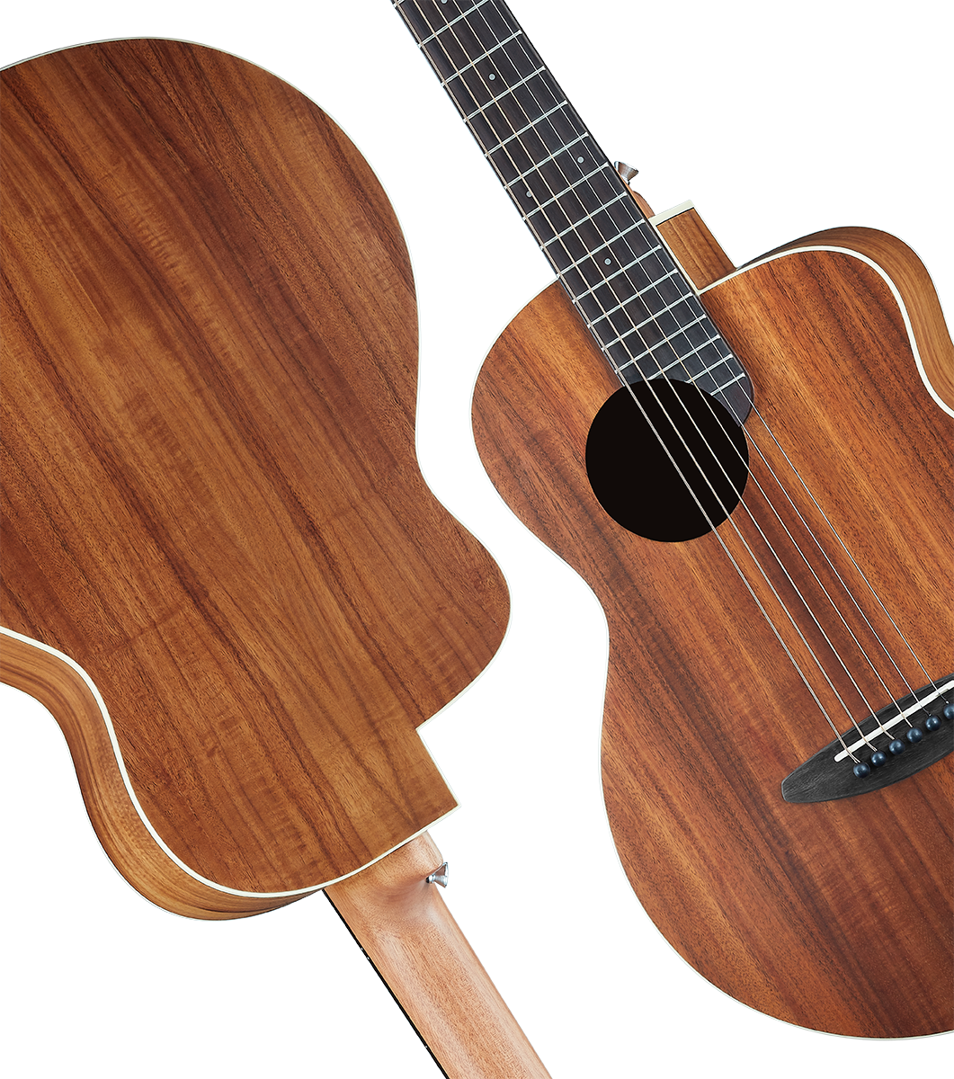 36吋合板旅行吉他,兼具舒適手感與聲音品質。音色穩定,堅硬不易彎曲變形,較不受氣候與濕度變化影響,能適應劣質的環境。