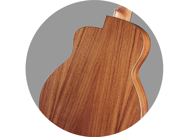 面單30使用台灣相思木面、背、側板。在彈奏上高頻明亮清脆、中頻渾厚飽滿,音色甜美且具穿透力。磨砂質感的亮啞光漆漆面,展現柔和的視覺感。兼具舒適手感與聲音品質。綜合單板的良好共鳴,與合板的穩定特性。提升整體共鳴與音色,也擁有一定的穩定性。