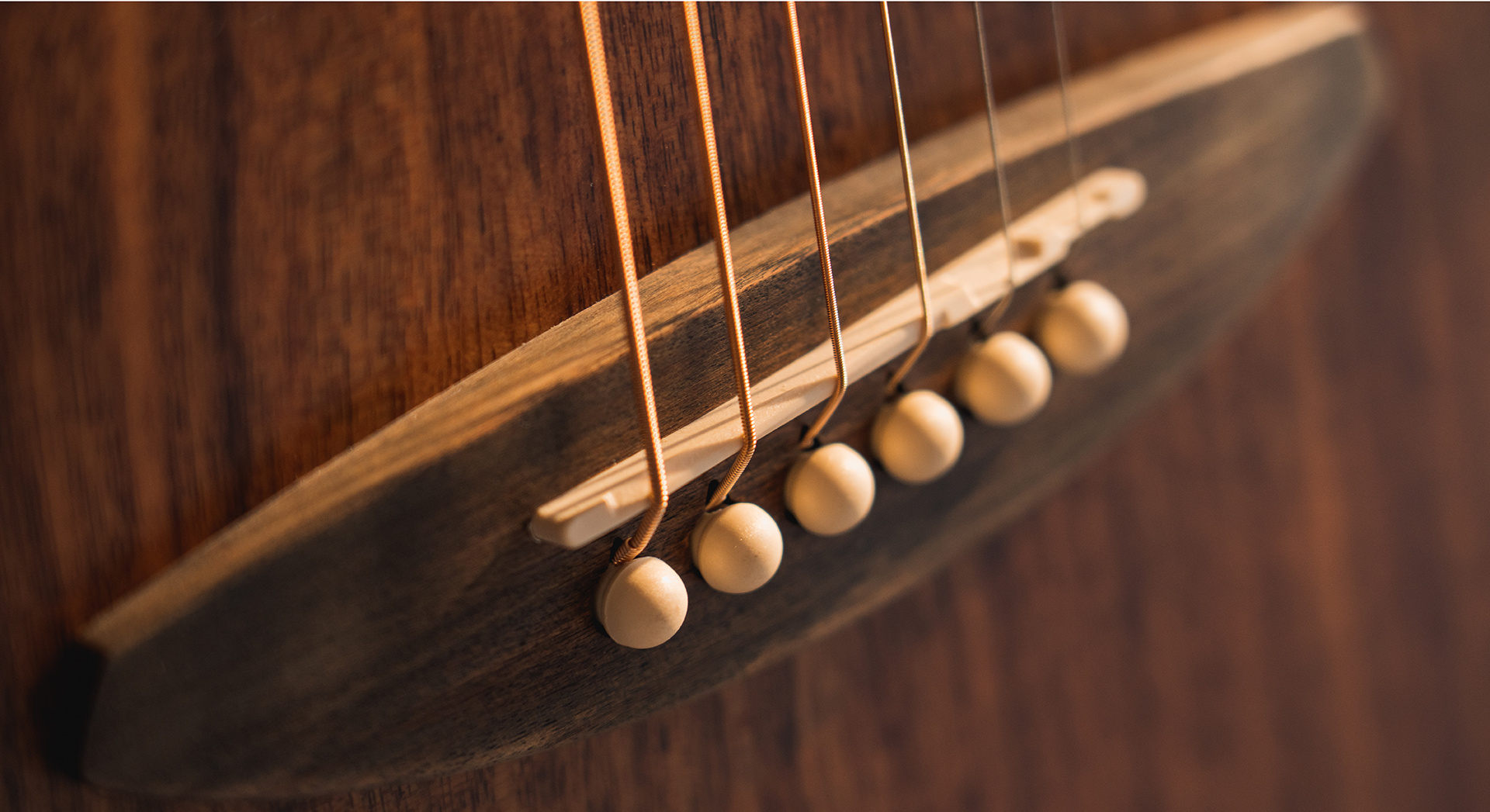 鳥吉他定製的微笑造型琴橋,使用硬度較高的玫瑰木,能支撐琴的後段琴弦張力。