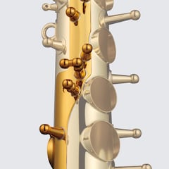 可調式前方 F 鍵 獨特的水滴型 F 鍵可提升演奏性。 演奏者可根據自己的喜好調整它。 | 左手小指按鍵 改良式左手小指交互按鍵,提高演奏性與舒適度。 | 兩點接觸的連接環 連接環採用兩點接觸,以加強投射力並實現自由吹奏的響應。 |