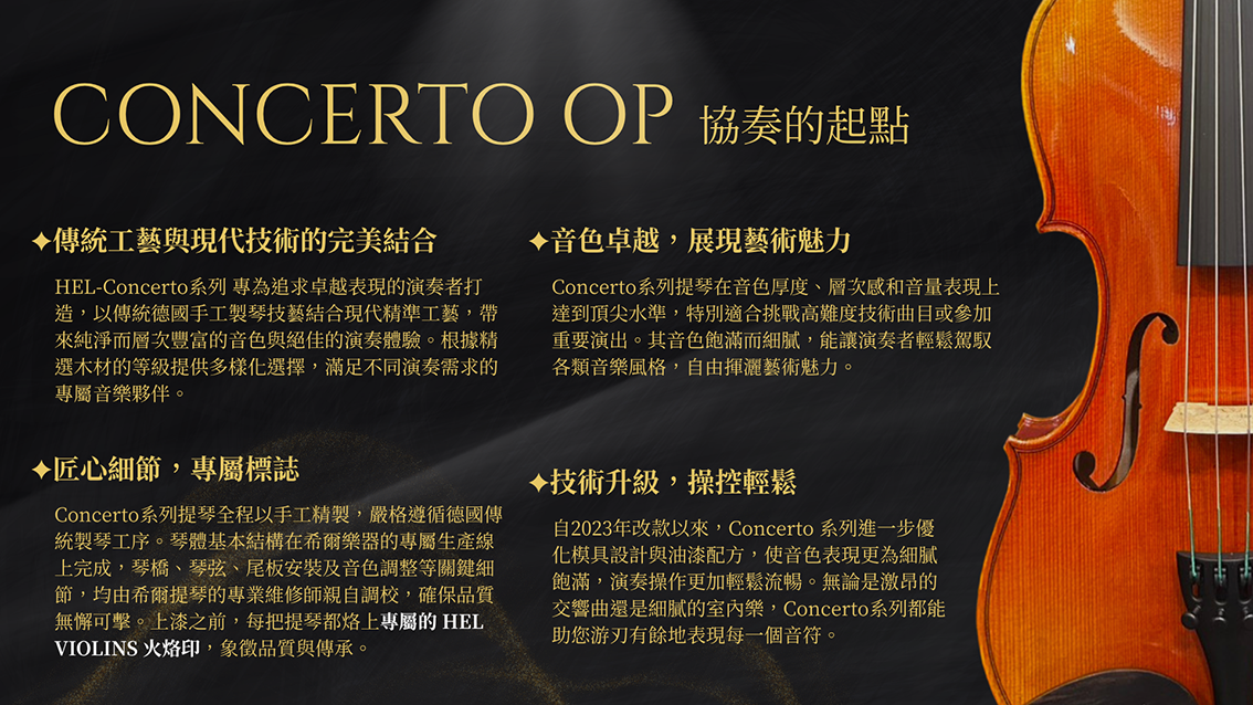 - 「純手工提琴,此入門型號可讓學習者體驗來自大師工作室級的製琴技術。
