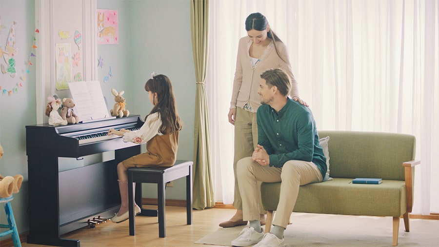 有了 88 鍵鋼琴機制,GH3(三階段感應漸進式琴鎚)琴鍵再現原聲鋼琴的觸感,自然重現較低音域的沉重感,到高八度音階的輕巧感。