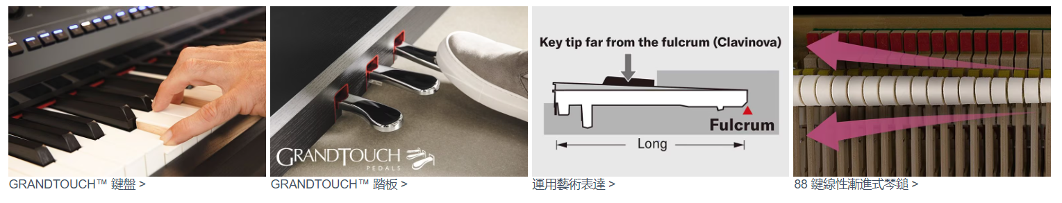 - 配備 88 鍵線性漸進式琴槌的 GrandTouch™ 鍵盤