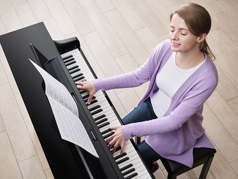 享受只有數位鋼琴才有的豐富舒適和方便的功能,包括錄音、與應用程式連結以及雙耳道取樣提供的悅耳耳機音效。