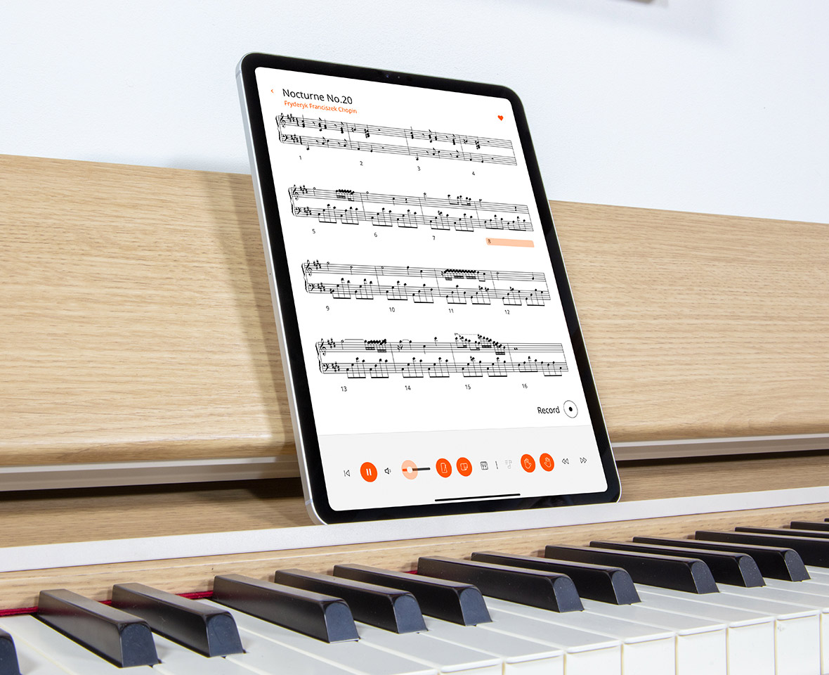 此外,您可以嘗試 Roland Piano App,運用 One Week Master 一週大師計畫,幫助您一週內學彈一首新的樂曲作品,還可以使用自動錄音錄下自己的演奏,以聆聽您的練習成果。