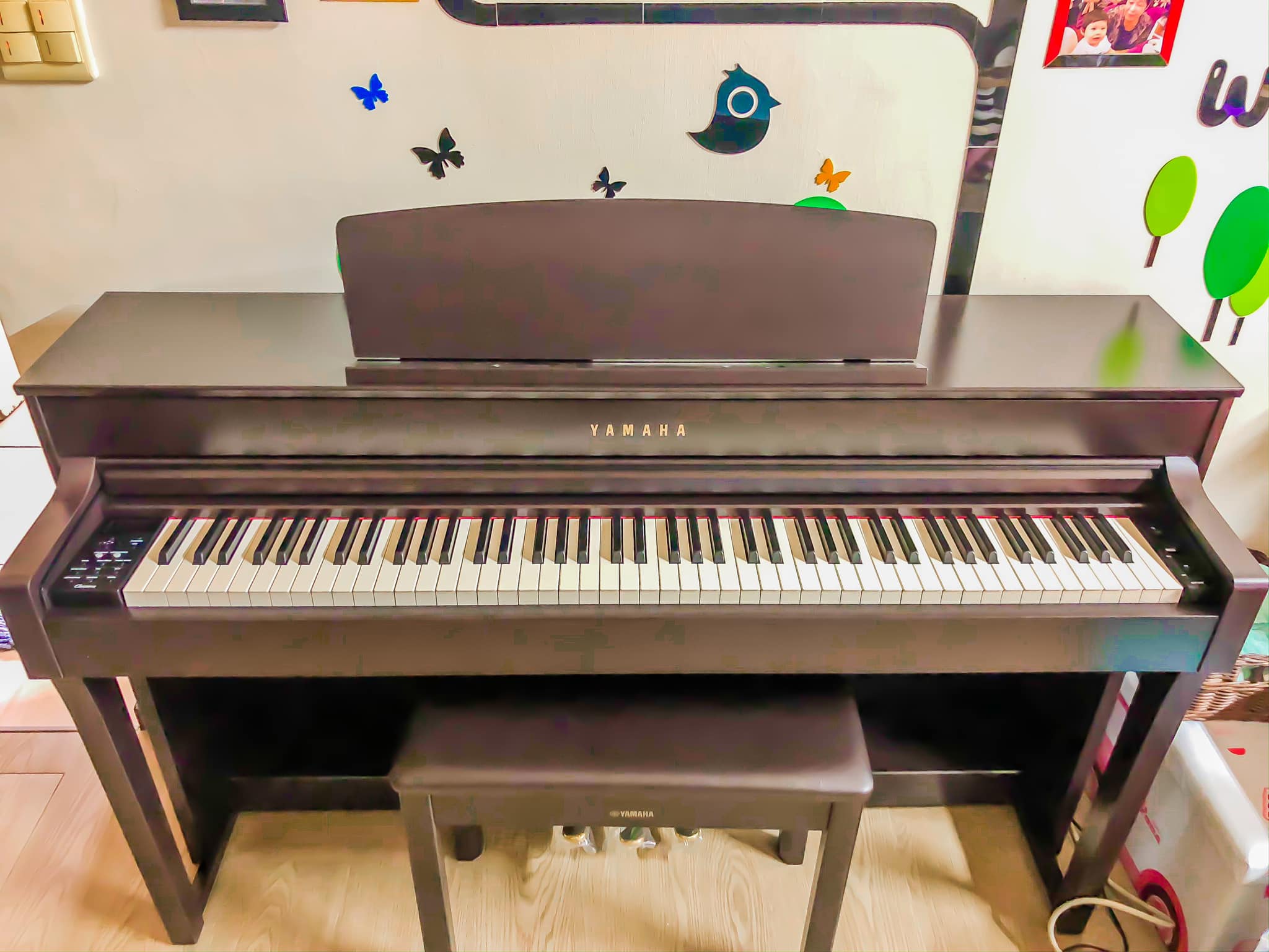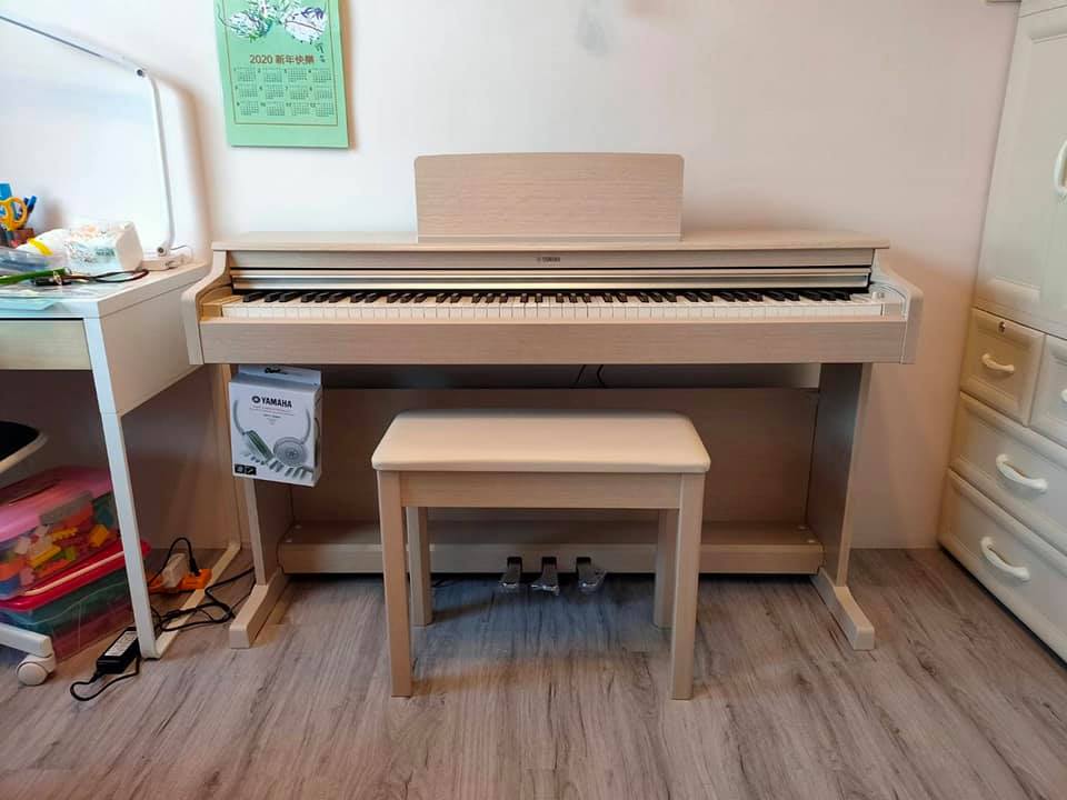 因為要搭配新家裝潢擺設,所以想找一部白色或淺色的數位鋼琴,經門市人員的介紹後,毫不猶豫便決定購買淺原木色造型及有簡潔明瞭功能鍵的YDP164數位鋼琴。