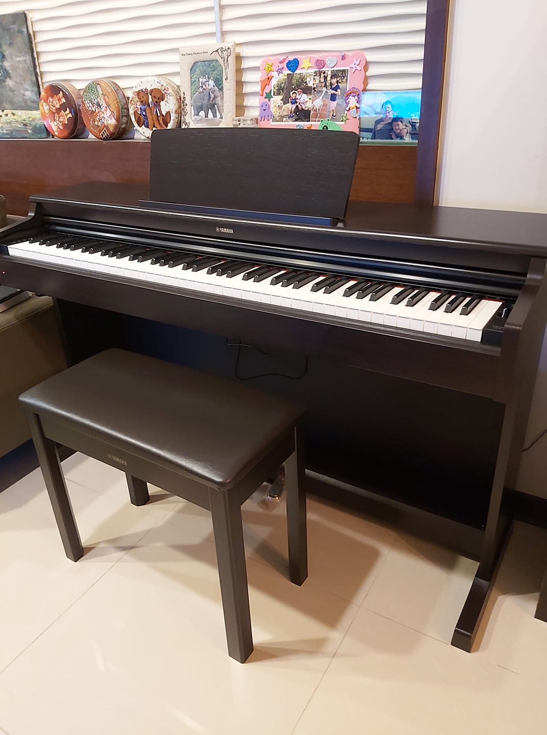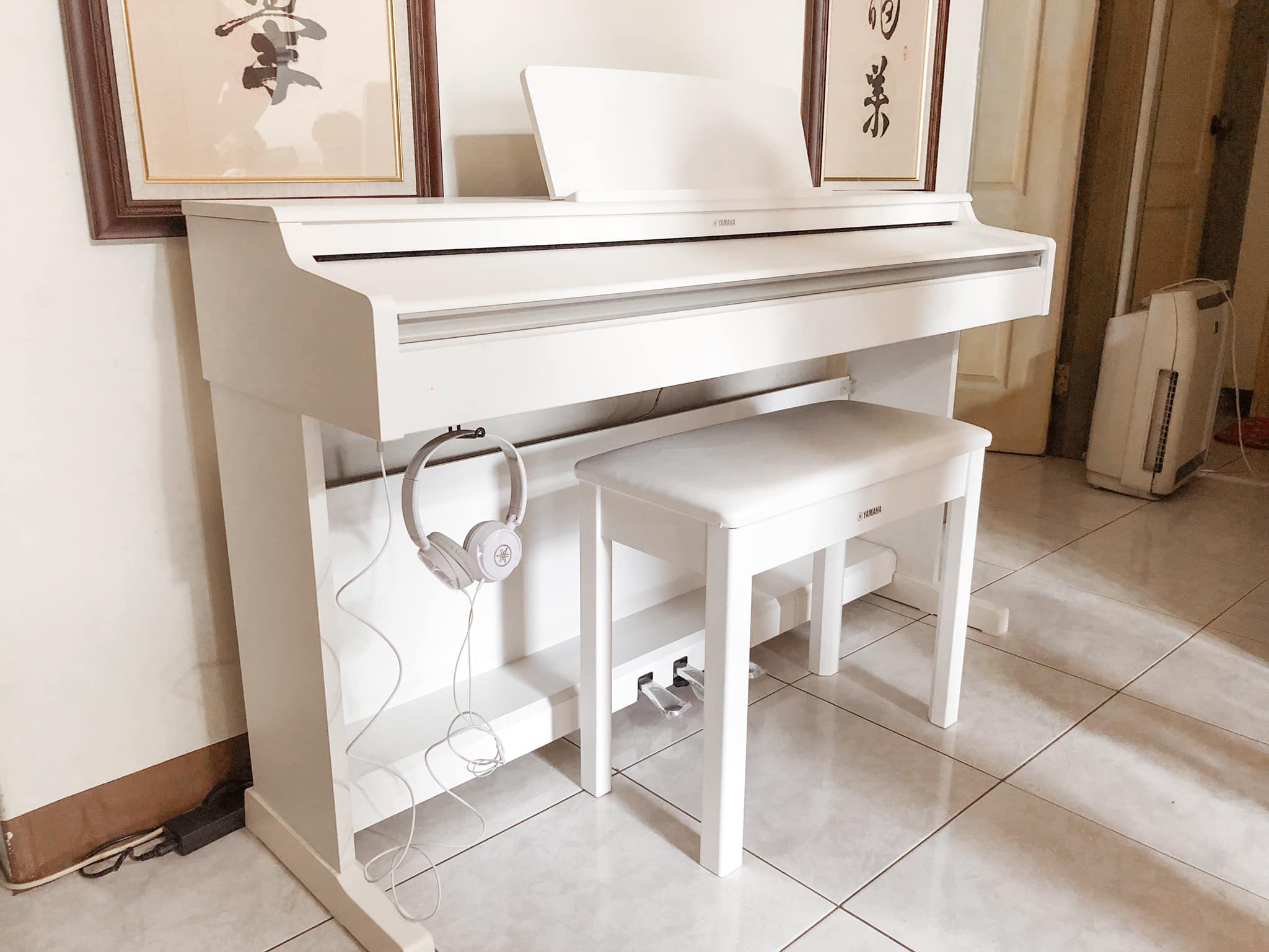 因為家中已有傳統鋼琴了,但另外一個家也想要擺台輕便的數位鋼琴能持續練習,透過老師的介紹請台南功學社的人員推薦幾款數位鋼琴,最後決定購買YAMAHA CLP735,它除了功能好之外,還擁有GrandTouch琴的觸鍵以及新款CFX及具森朵夫鋼琴音色(共38種音色)、20種節奏(鼓+BASS)、16軌MIDI/Audio錄音,最最最重要的是……有白色的機種;謝謝老師介紹到功學社買琴,無論住多遠都能有全省功學社專業的服務。